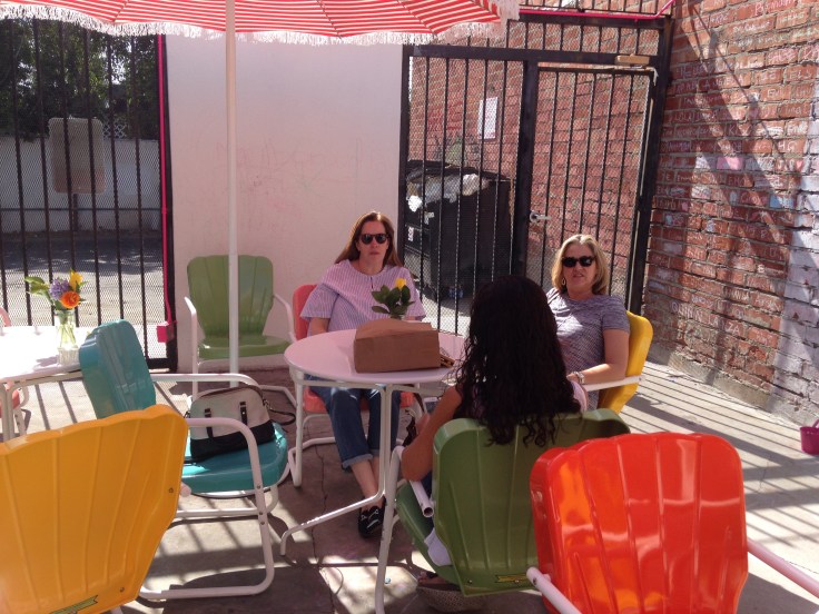 Our last stop on this beautiful Spring day was in Larchmont Village. We ambled up and down the lovely shopping street. I discovered Movint clothing store and learned that the clothing from my childhood is now “vintage”.