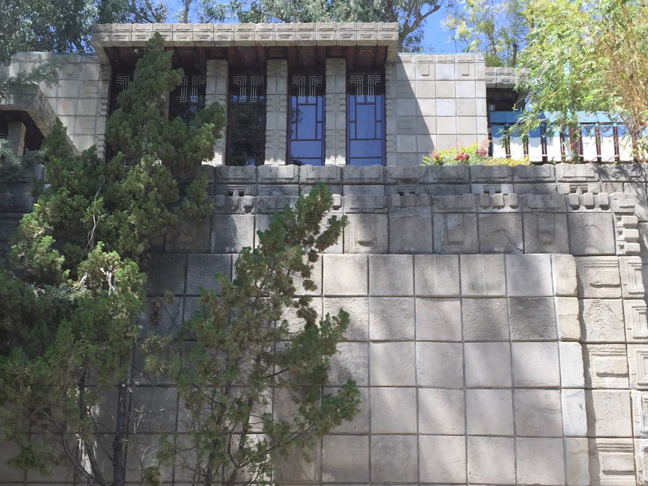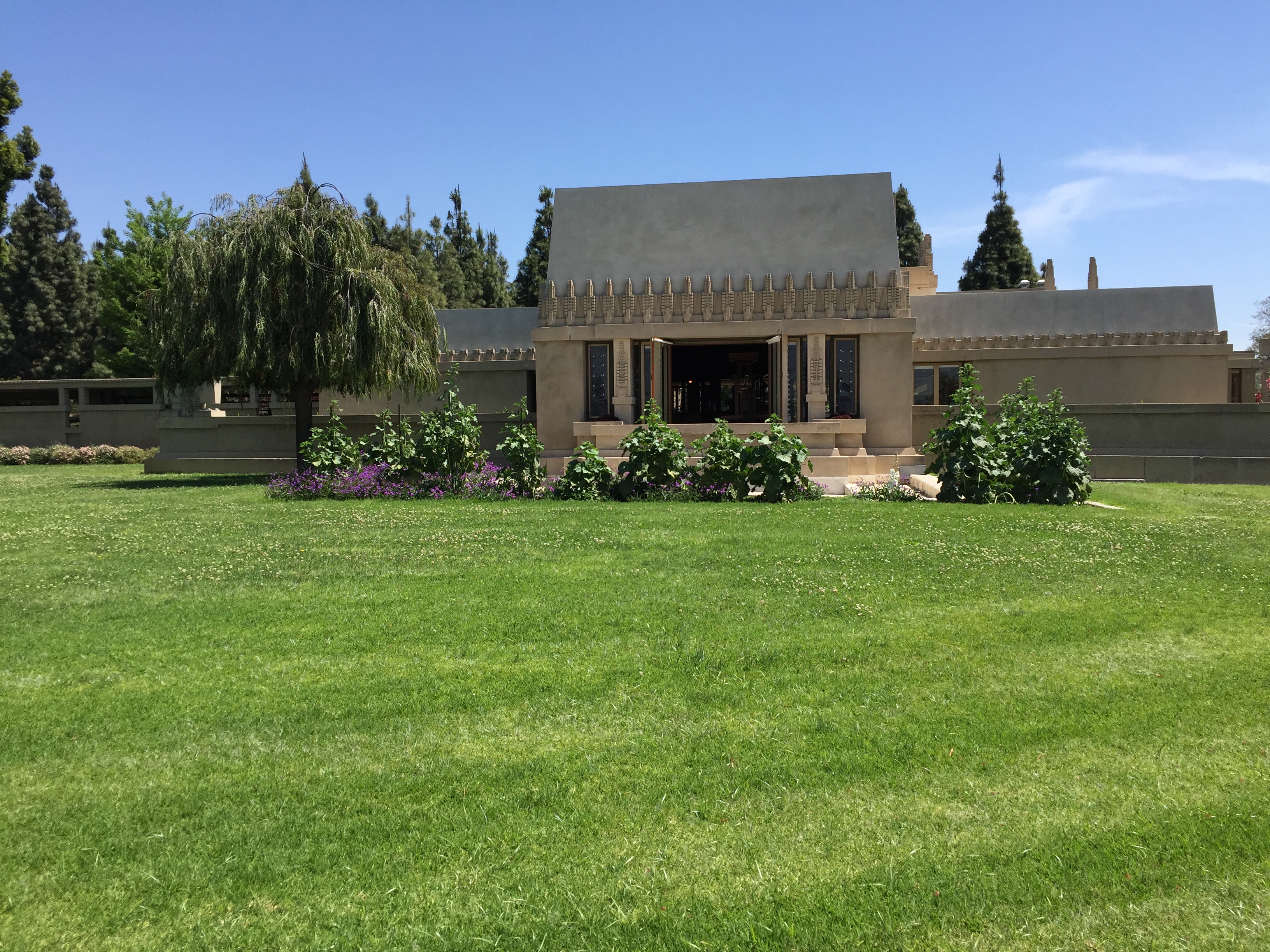 The Hollyhock house sits upon a hill in Barnsdall Park in Los Feliz. Aline Barnsdall commissioned the house (using her oil money) in the early 1900’s and hoped it would become a centerpiece for local artists. The house is certainly worth a visit and the grounds are wonderful. Our tour at Hollyhock house prepared us for our self-guided driving tour of local, privately owned Frank Lloyd Wright homes.