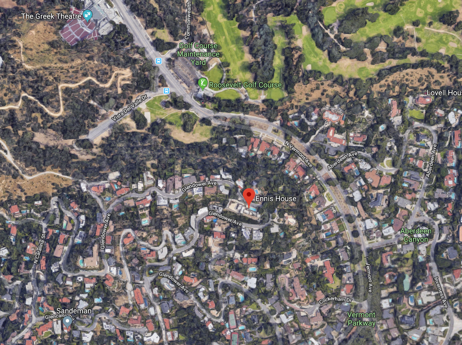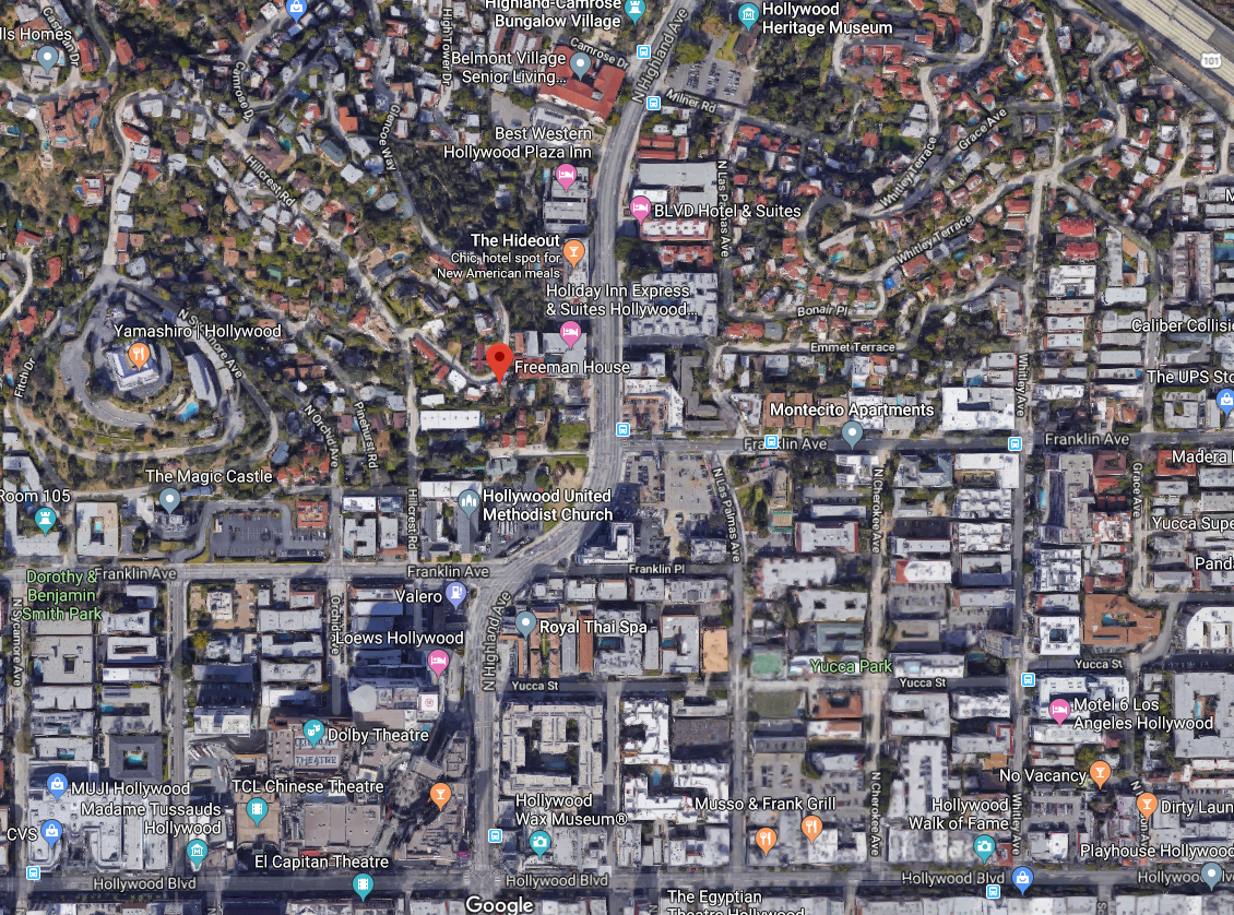 We drove past three different Frank Lloyd Wright homes: The Ennis House, the Freeman House and the Franklin House. Mary did an excellent job navigating curvy Hollywood streets.