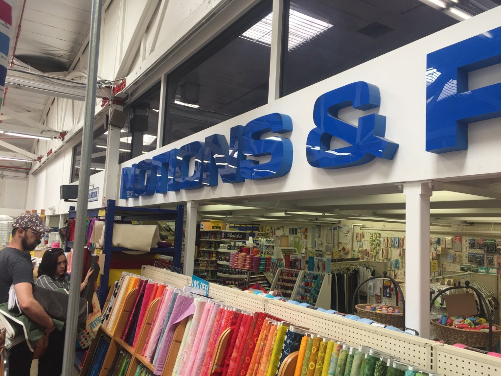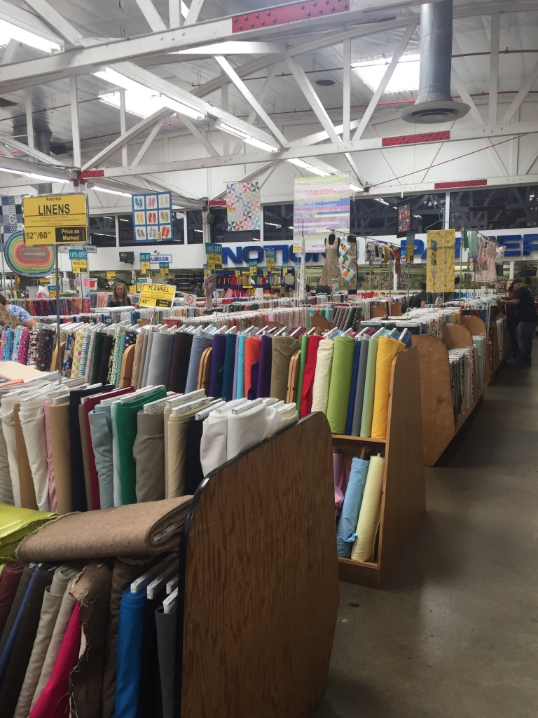 After our walking tour we drove a short distance to the fabric district. I searched for fabric to make curtains, and came away with pillows for my patio furniture.