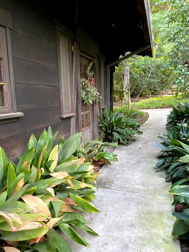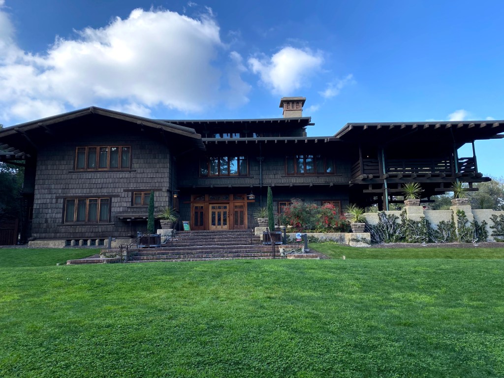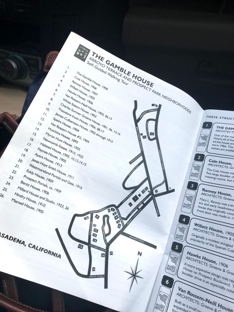 We had intended to tour the Gamble House next but could not join the tour. Instead we purchased a neighborhood guide for $1.50 and did our own walking tour of that neighborhood. This part of Pasadena was home to many of the richest people to settle here – the Wrigleys, Gambles, Armours… and the Greene and Greene brothers.